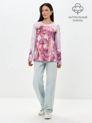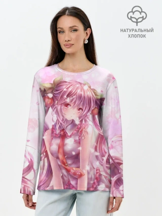 Лонгслив женский. Хлопок / Ванильная Hatsune Miku