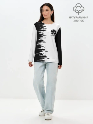 Лонгслив женский. Хлопок / Чёрный клевер,