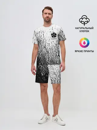 Мужской костюм с шортами / Черный клевер на едко белом фоне