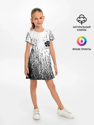Детское платье / Черный клевер на едко белом фоне