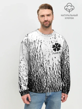 Мужской свитшот базовый / Черный клевер на едко белом фоне