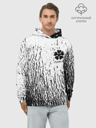 Худи мужской база хлопок / Черный клевер на едко белом фоне