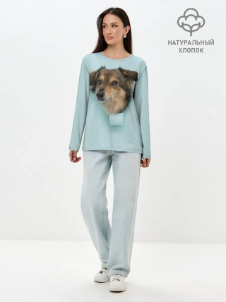 Лонгслив женский. Хлопок / Беспородная Собака дворняга / A Dog