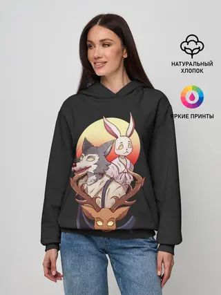 Женское худи / Олень, волк и заяц