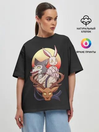 Женская футболка оверсайз / Олень, волк и заяц