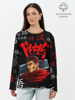 Лонгслив женский. Хлопок / Берсерк иероглифы паттерн