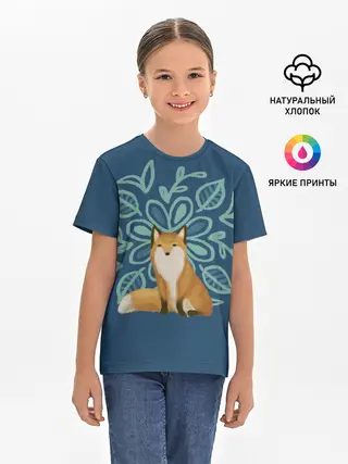 Детская базовая футболка / Лиса с цветочным узором
