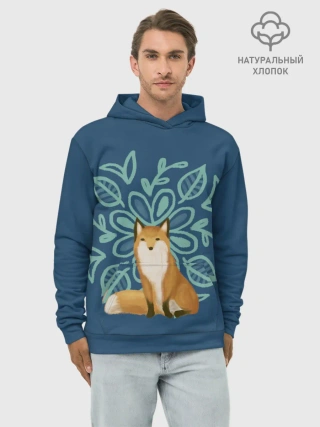 Худи мужской база хлопок / Лиса с цветочным узором