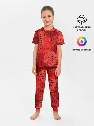 Детская пижама с брюками / Тропические листья Монстера