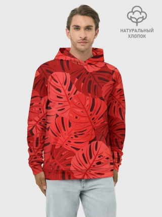 Худи мужской база хлопок / Тропические листья Монстера