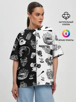 Женская футболка оверсайз / КРОВОСТОК ТАТУИРОВКИ ЧБ