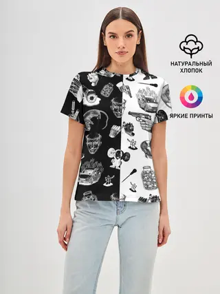 Женская базовая футболка / КРОВОСТОК ТАТУИРОВКИ ЧБ