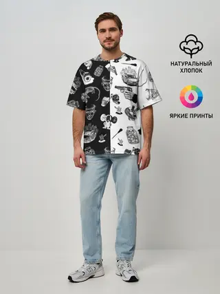 Мужская футболка оверсайз / КРОВОСТОК ТАТУИРОВКИ ЧБ