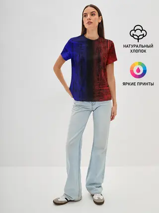 Женская базовая футболка / Сине-Красная Текстура