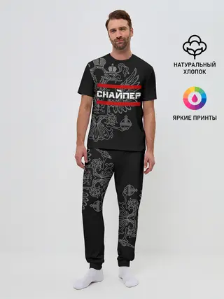 Мужская пижама с брюками / Снайпер, белый герб РФ