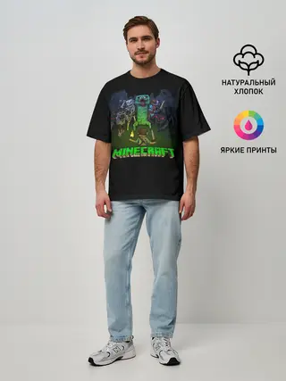 Мужская футболка оверсайз / Стив против монстров | Майнкрафт