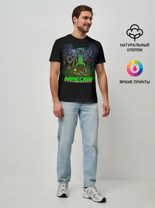 Мужская базовая футболка / Стив против монстров | Майнкрафт