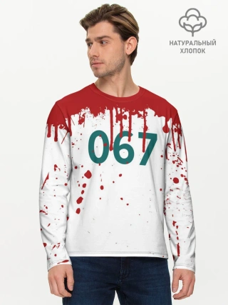 Мужской лонгслив базовый / ИГРА В КАЛЬМАРА ПЕРСОНАЖ 067 КРОВЬ