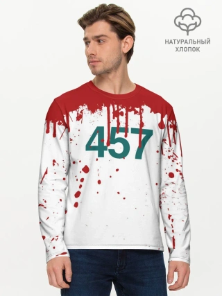 Мужской лонгслив базовый / ИГРА В КАЛЬМАРА ПЕРСОНАЖ 457 КРОВЬ