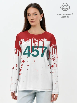 Лонгслив женский. Хлопок / ИГРА В КАЛЬМАРА ПЕРСОНАЖ 457 КРОВЬ