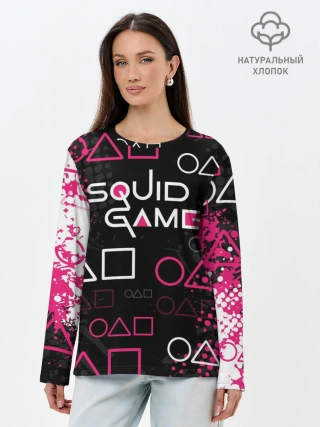Лонгслив женский. Хлопок / ИГРА В КАЛЬМАРА / ГРАНЖ ЛОГО