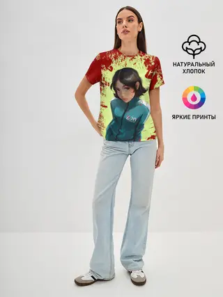 Рюкзак джинсовый / ИГРА В КАЛЬМАРА ПЕРСОНАЖ 457 КРОВЬ