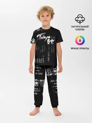 Детская пижама с брюками / Токио Надпись Иероглифы Япония |Tokyo