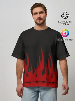 Мужская футболка оверсайз / Pixel Fire