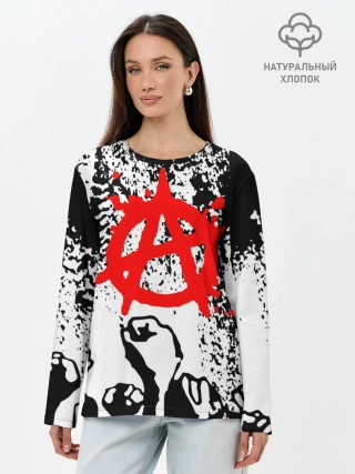 Лонгслив женский. Хлопок / АНАРХИЯ / РЕВОЛЮЦИЯ,