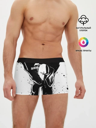 Мужские трусы боксеры / Черно-белый Сайтама One Punch-Man
