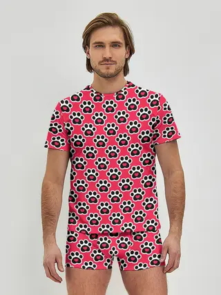 Мужские трусы с футболкой / Следы от Лап с Сердечками