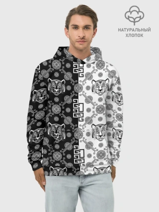 Худи мужской база хлопок / Тигры в китайском стиле