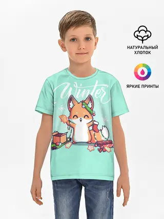 Мужская футболка оверсайз / Зима. Новогодний лисенок