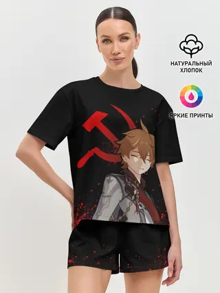 Женская пижама с шортами / ТАРТАЛЬЯ | СНЕЖНАЯ | ЧЕРНЫЙ