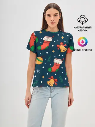 Женская футболка оверсайз / Новогодний, рождественский узор