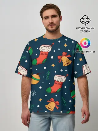 Мужская футболка оверсайз / Новогодний, рождественский узор