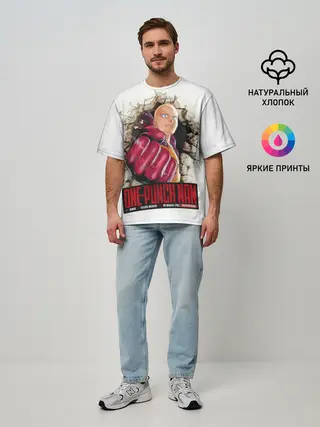 Мужская футболка оверсайз / Сайтама пробивая стены One Punch-Man