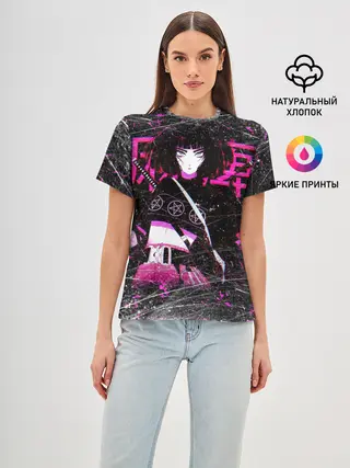 Женская базовая футболка / Vinne Yuna Самурай Киберпанк
