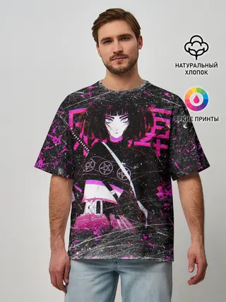 Мужская футболка оверсайз / Vinne Yuna Самурай Киберпанк