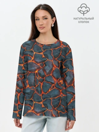 Лонгслив женский. Хлопок / неоновая магма