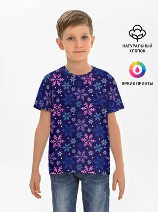 Детская базовая футболка / Ночные Снежинки
