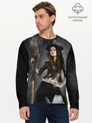 Мужской лонгслив базовый / Милая ведьма с метлой