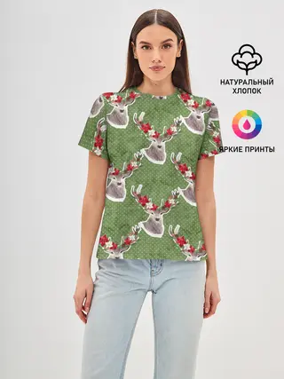 Женская базовая футболка / Новогодние олени 2022
