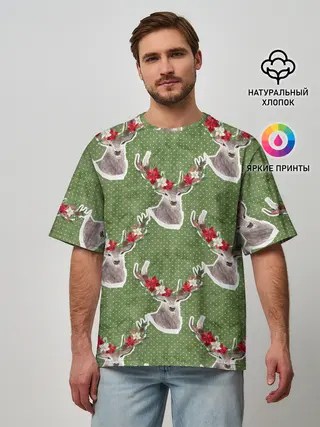 Мужская футболка оверсайз / Новогодние олени 2022