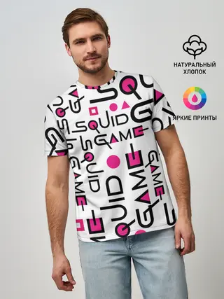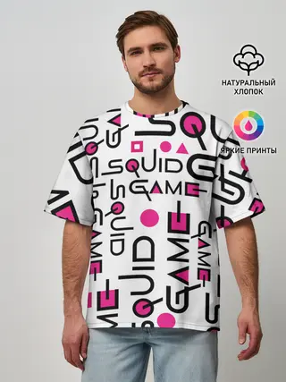 Мужская футболка оверсайз / ИГРА В КАЛЬМАРА УЗОР И ПАТТЕРН ЛОГО