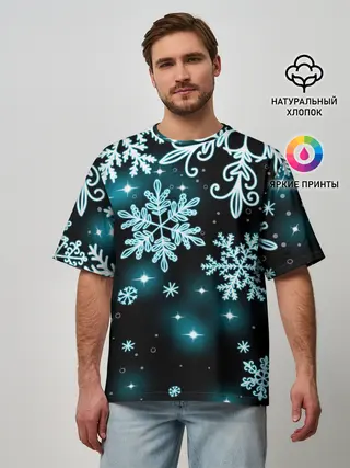 Мужская футболка оверсайз / Космические снежинки