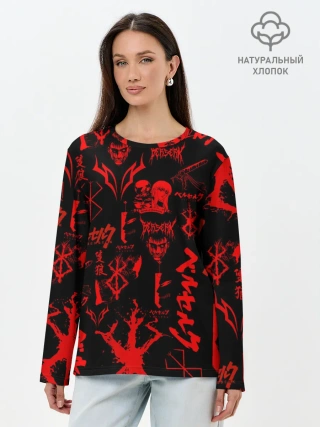 Лонгслив женский. Хлопок / БЕРСЕРК ПАТТЕРН СИМВОЛИКА / КЛЕЙМО