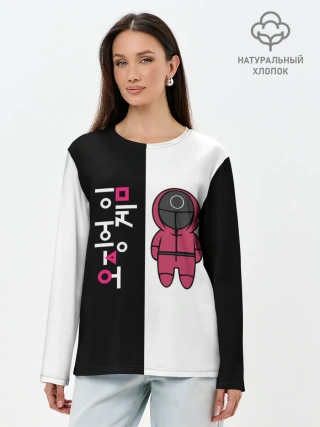 Лонгслив женский. Хлопок / ЛОГОТИП И ОХРАНА | ИГРА В КАЛЬМАРА