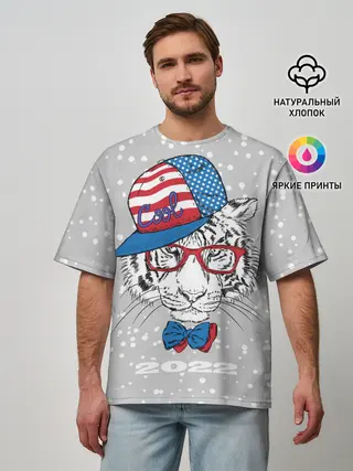 Мужская футболка оверсайз / Крутой белый тигр