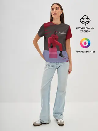 Женская базовая футболка / КВАДРАТ НА ОТДЫХЕ | ИГРА В КАЛЬМАРА